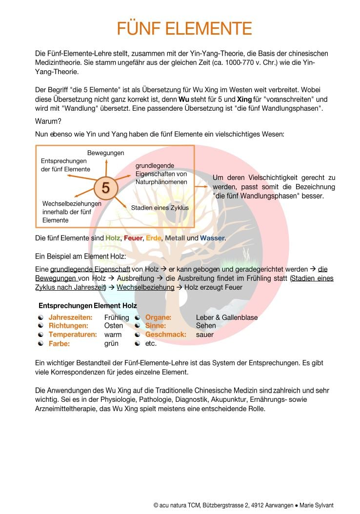 Die Fünf-Elemente-Lehre stellt, zusammen mit der Yin-Yang-Theorie, die Basis der chinesischen Medizintheorie. Beide stammen ungefähr aus der gleichen Zeit.
